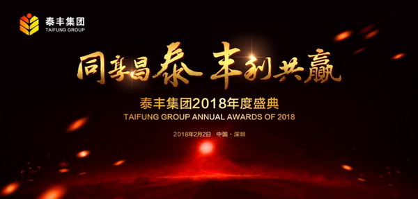 2018年2月2日,“同享昌泰,豐利共贏”泰豐2018年年度盛典在深圳中洲萬豪酒店舉行。泰豐人在此歡聚一堂,共度盛典。