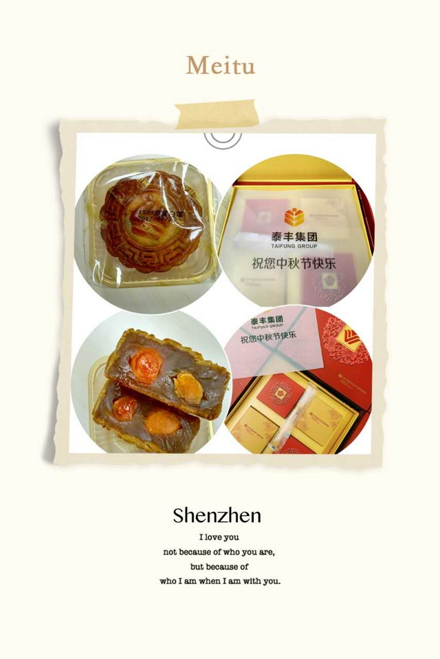 哇!小道消息還真準,這次集團專門與溫德姆酒店合作訂制了雙黃白蓮月餅!嘖嘖~~有口福了!那我們就打開看看是怎樣的月餅。打開精美的包裝首先浮現(xiàn)在外面眼前的就是公司為我們送上的祝福語,簡單的一句“祝您中秋快樂”讓我深深感受到公司對員工滿滿的愛和關懷!打開盒子就飄來一股淡淡的月餅香味,切開月餅看到的是兩只晶瑩剔透的蛋黃和蓮蓉,咬上一口滿嘴都是蓮蓉的清香可口和獨特的咸蛋黃味道,雙重刺激著味蕾妙不可言!此時只能用一個字來表達我的感受:“贊”。